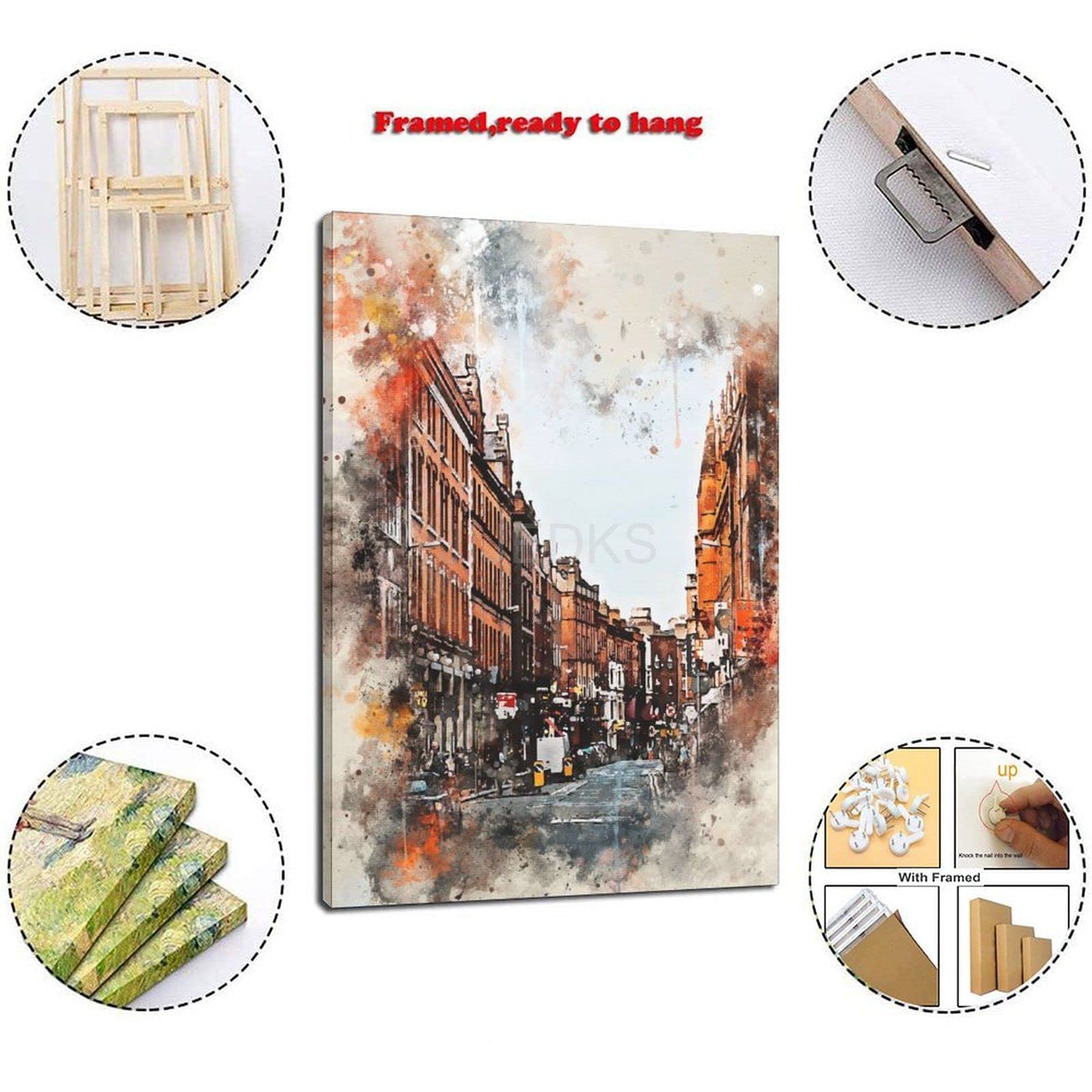 Amazon Com 34 World Famous City Landmark Scenery Dublin Old Street Ireland Vintage Watercolor Wall Art Poster Decorative Painting Canvas Wall Art Living Room Posters Bedroom Painting 12x18inch 30x45cm Posters Prints